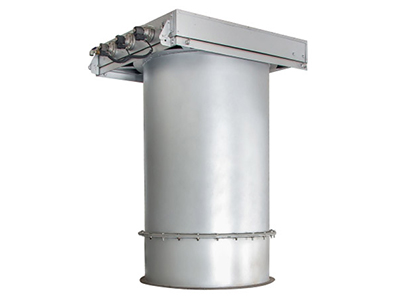 倉頂脈沖除塵器是安裝在料倉的頂部,起到過濾粉塵、凈化空氣的作用。倉頂脈沖除塵器與料倉密封連接后與料倉形成一個公有濾芯,當物料通過氣力輸送至料倉中時料倉的內外有一定的壓差,氣體由倉內向倉外排放,利用脈沖除塵器內的濾芯將粉塵過濾保留在料倉內,將凈化后的空氣排放到大氣中。